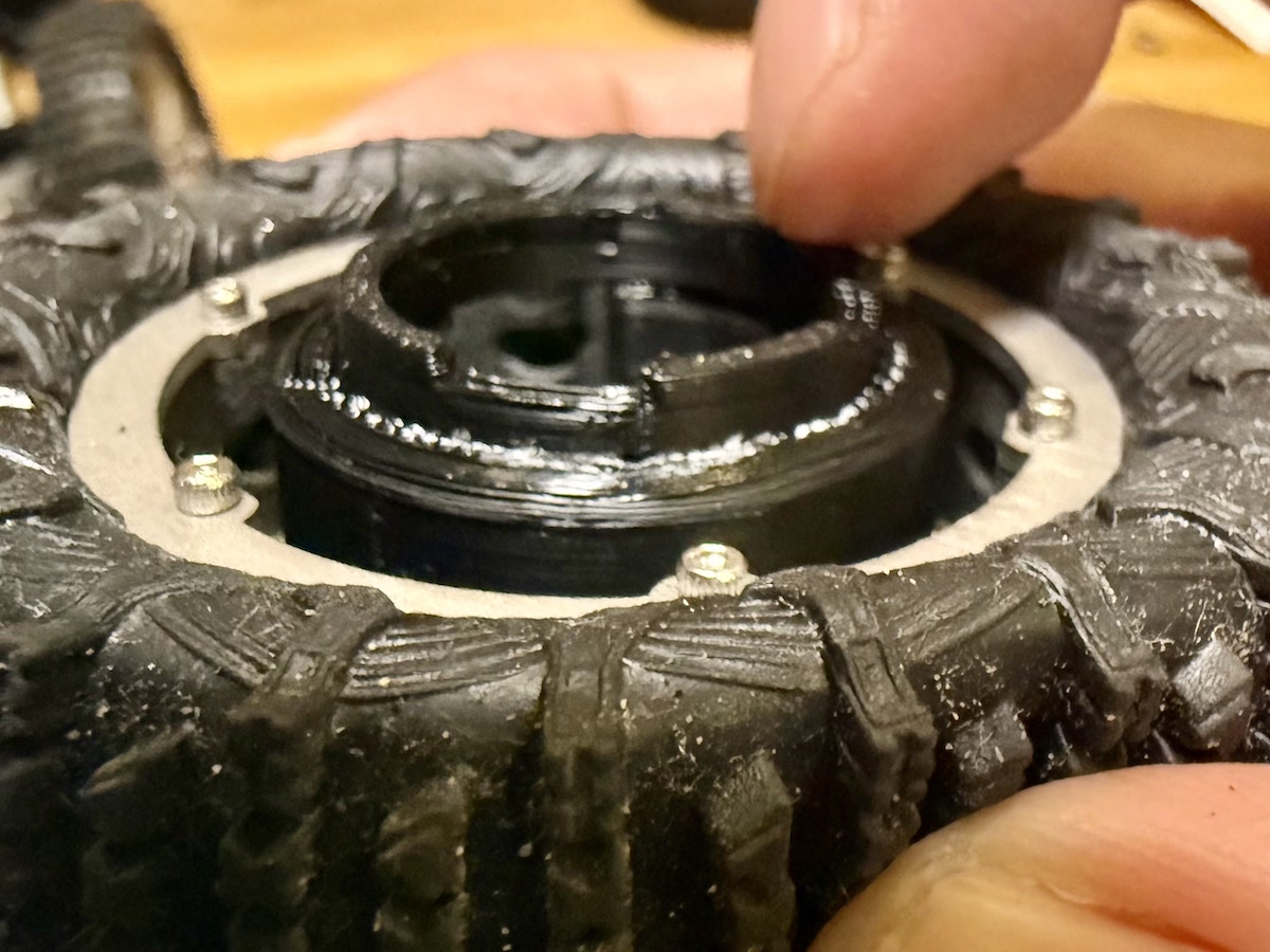 C3クローラーのホイールにタングステンウエイトハンガーを装着する