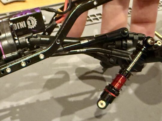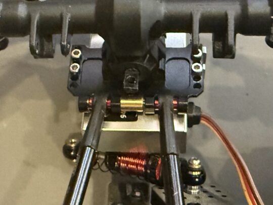 ハイクリアランスリンクと合わせて交換してみると、アッパーリンクとロアリンクが干渉してしまい脚の動きが大きく制限されてしまう状態になるとわかりました。