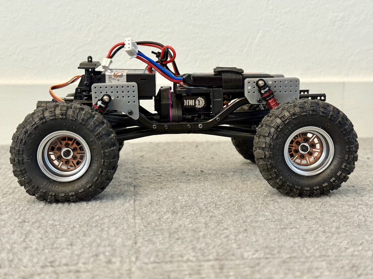 LCGフレームのようにアッパーリンクをフレームに直接固定する構成ならば問題ないのですが、4リンク全てがスキッドプレートに固定されるノーマルシャーシでは難しいみたいです。
