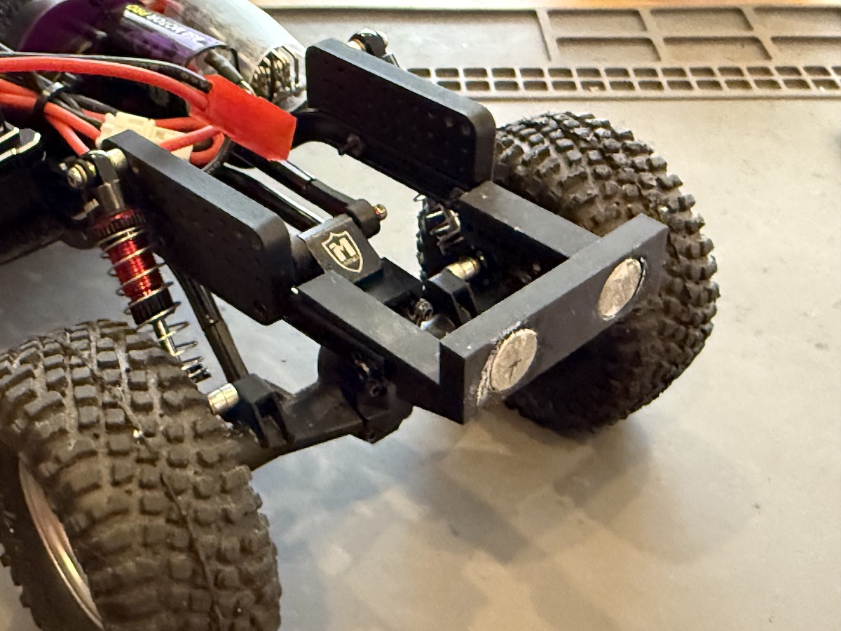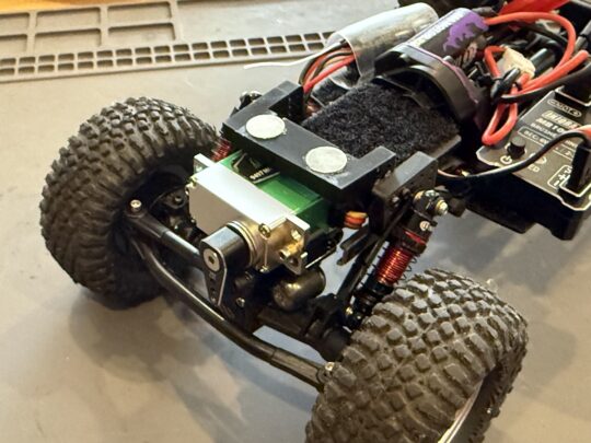 SCX24のC10ホイールベースとFCX24Mボディのホイールベースは1mm違いくらいなので問題なく装着できました。