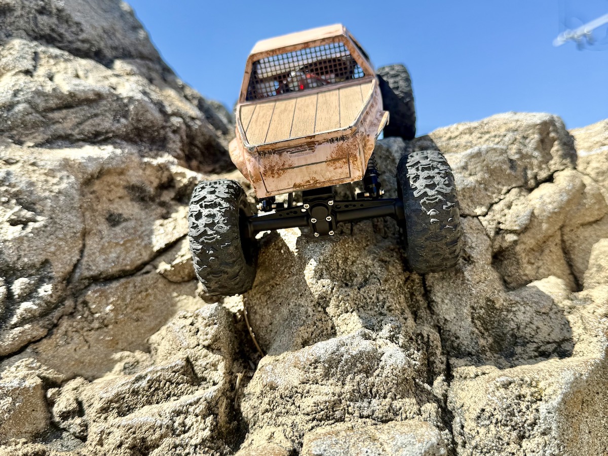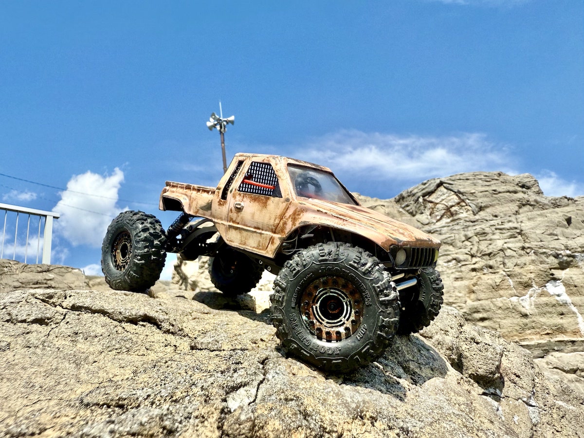 実際に走らせてみるとヌメっと岩に食いつく印象で、Flub RCの3Dプリントインナーもいい具合に潰れてくれます。