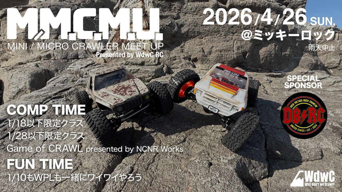 前回ご好評をいただいたWdwC RC主催のイベント”MINI / MICRO CRAWLER MEET UP”の第二回を開催してみようと思います。