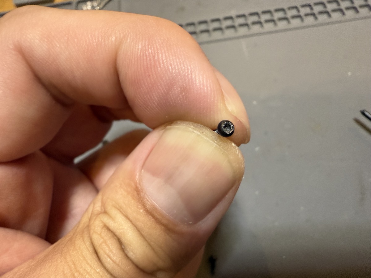 SCX24のRTRに使われていたネジをそのまま使っていたら、とあるパーツの取り付けでネジ頭がなめてしまいました。