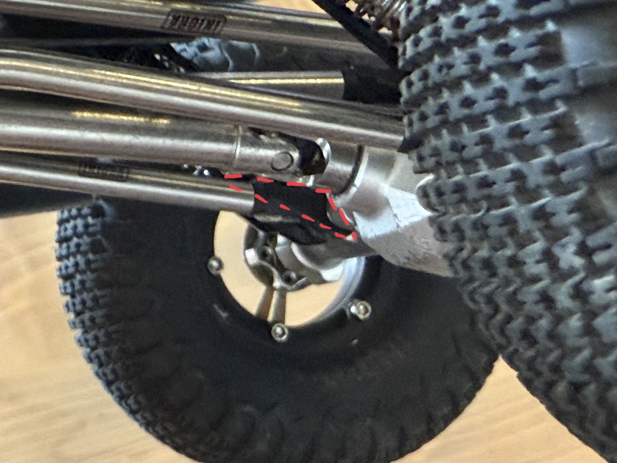 デフスライダーが装着されていない状態だと、ドライブシャフトとデフ玉が装着された箇所に空間が生まれて凸凹しているので岩に引っかかる時があります。
