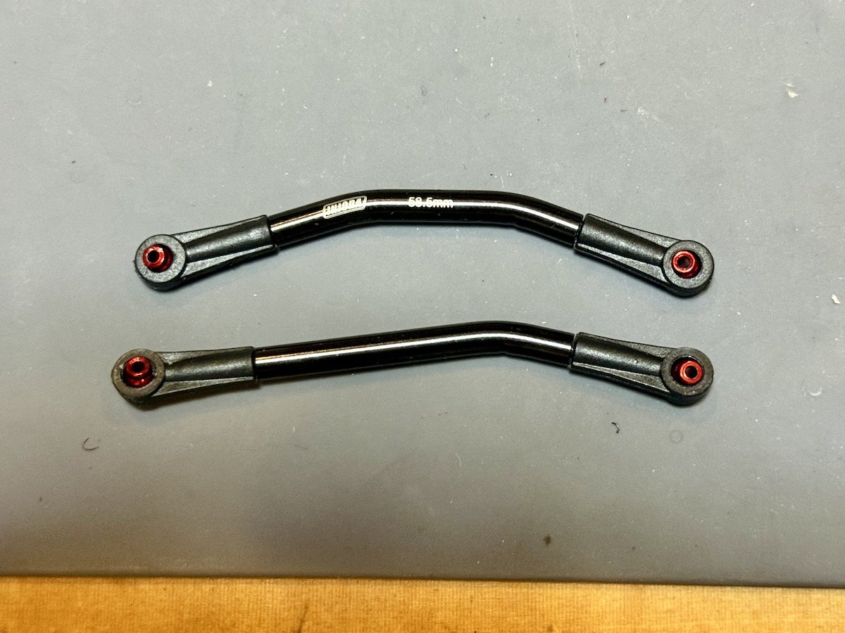 腹下のクリアランスを大きくして走破性がアップするダブルベンドリアリンクですが、日本からだと入手しにくいパーツでもあります。