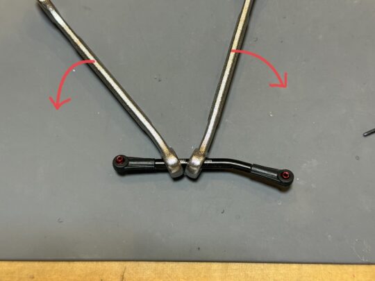 SCX24のリンクロッドを自作ダブルベンドリアリンクに加工してみる