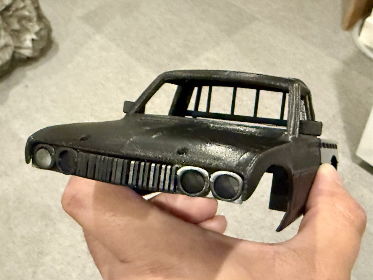 ヤスリがけが難しくてボディ全体の印象を大きく左右するフロントグリルはレジンプリンターでプリントしました。