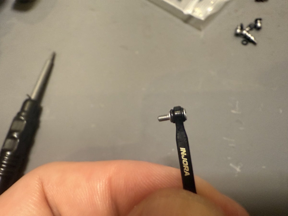 特に不満があったわけではないのですが、しばらく欠品していたINJORAのサーボとステアリングリンクが再入荷していたので交換することにしました。