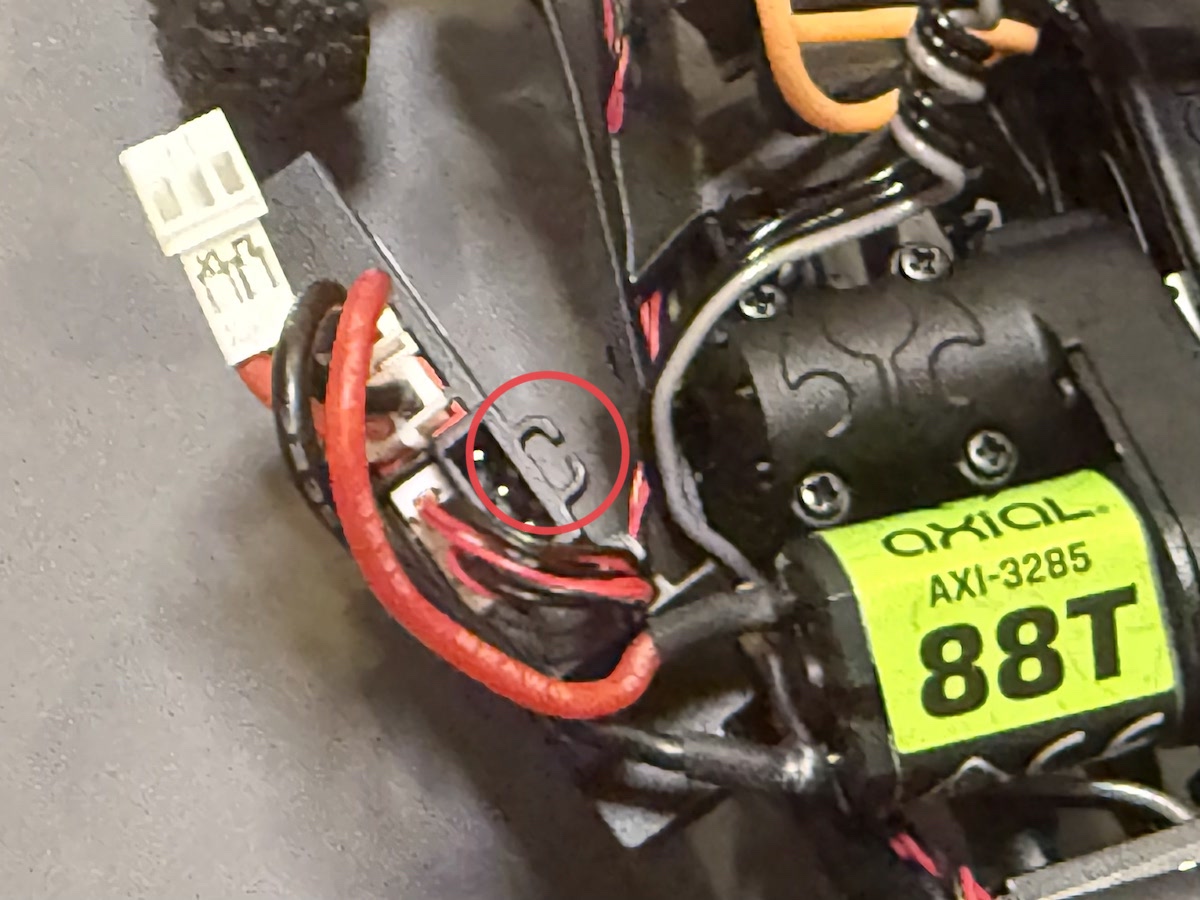 サーボのケーブルを留めるパーツがESC受信機とシャーシの間にあるので、サーボ交換の時は一旦シャーシから外して作業する必要があります。