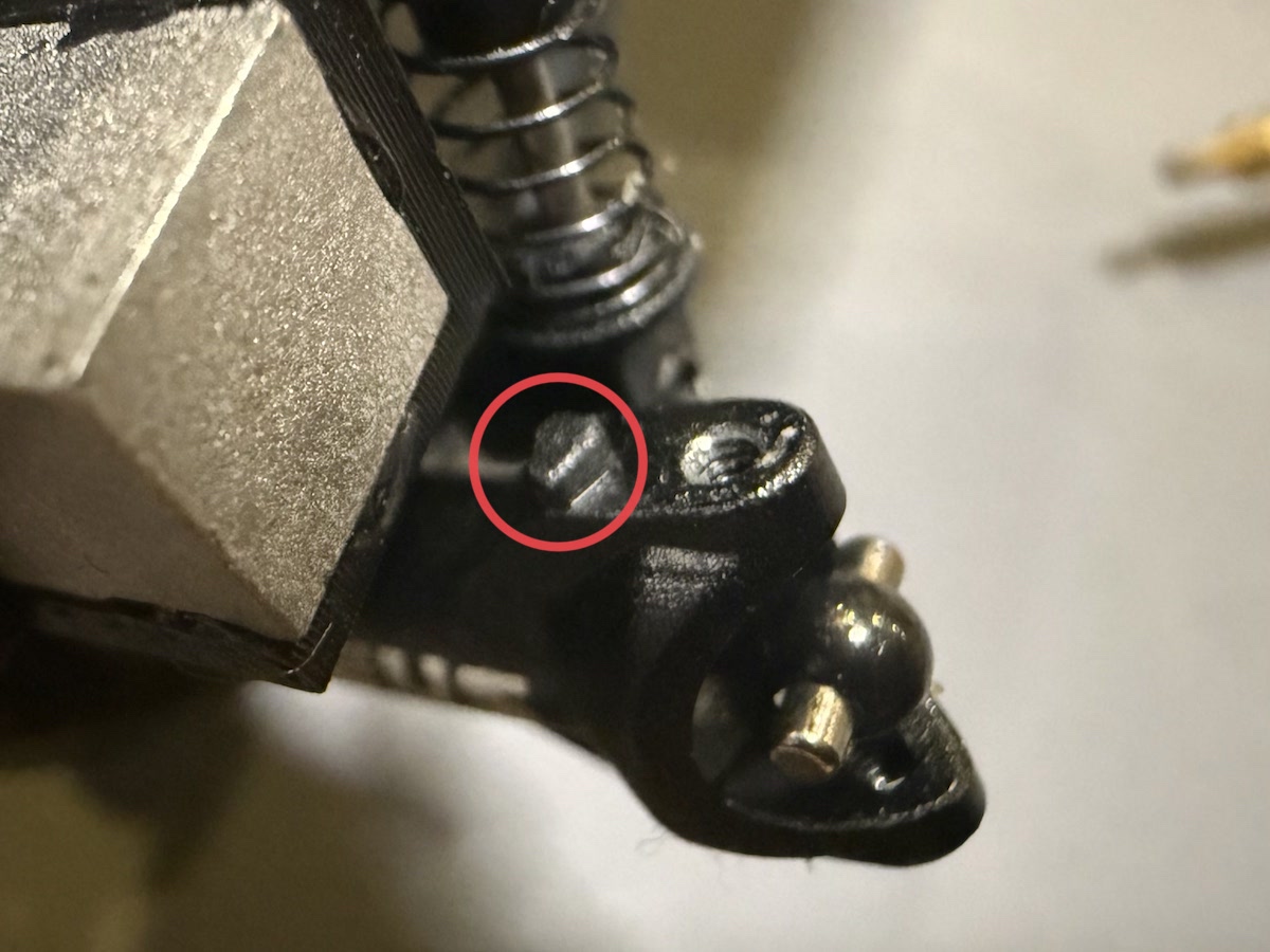 カスタム方法はすごく簡単で、赤丸で囲ったナックルのストッパーを削り落としてしまうだけです。