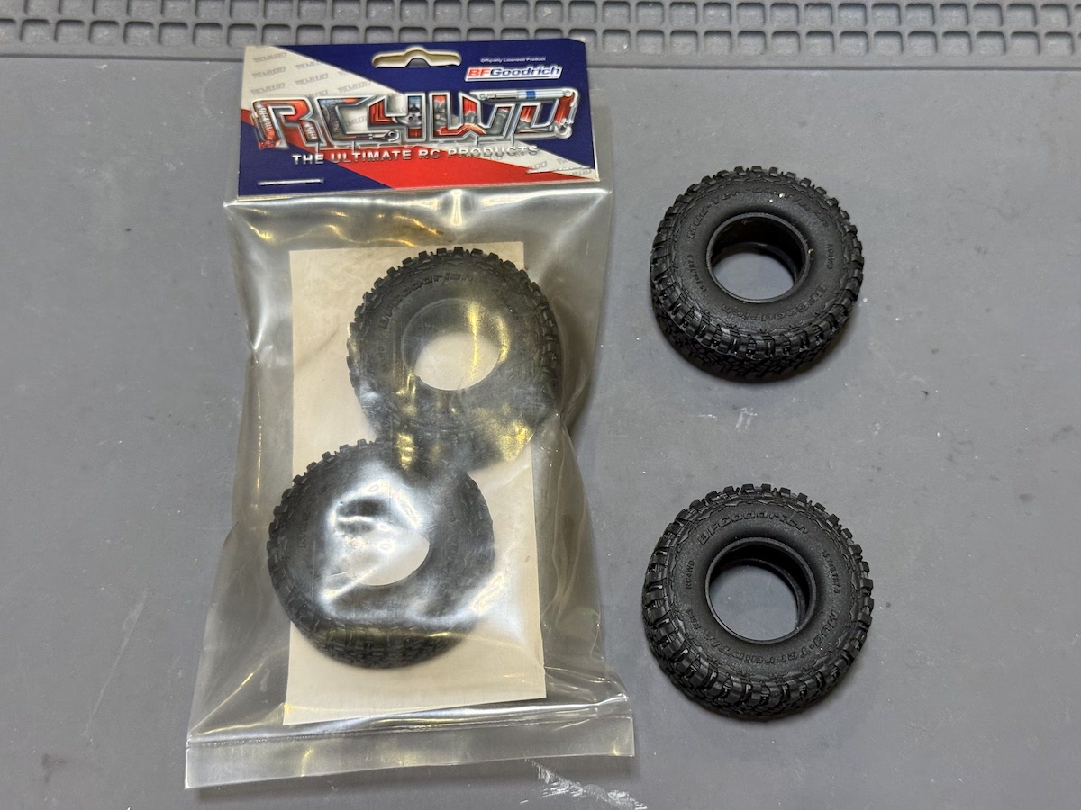 RC4WDのBFGoodrich Mud Terrainで外径41mm、太さ18mmのボリュームのあるタイヤです。