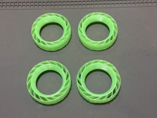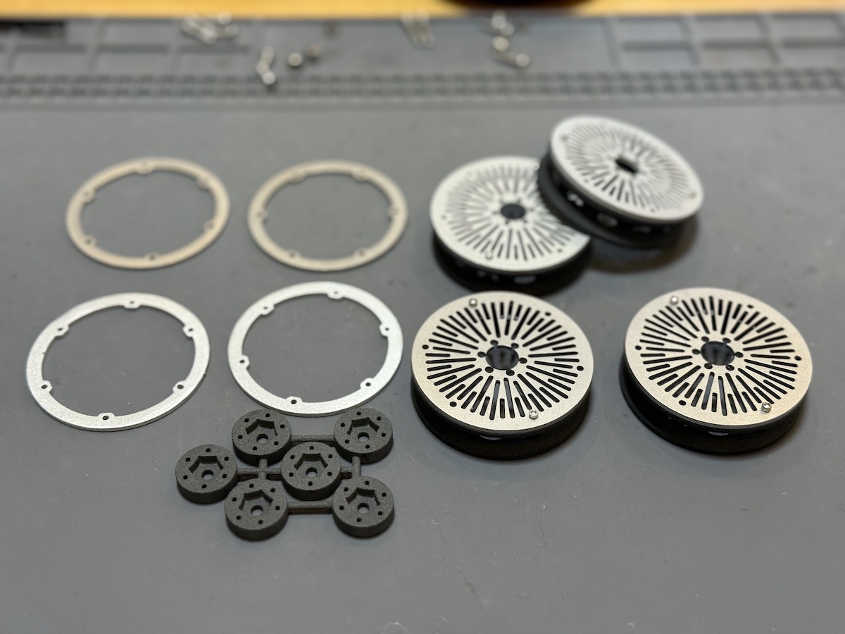 一般的なホイールはアルミ製が多いですが、この手のコンペホイールはアルミよりも軽い3Dプリントパーツで作られていることが多く軽量化もできます。