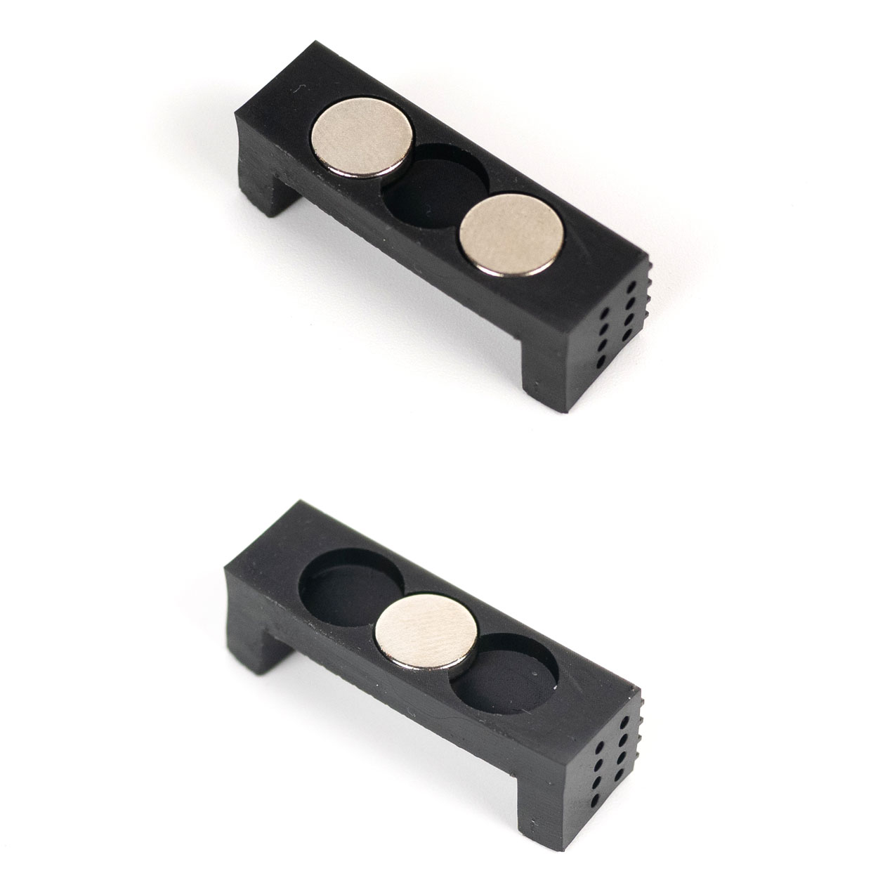各々のボディマウントには3つのマグネット取り付け穴が開いていますので、マグネット2つでも1つでも使えます。