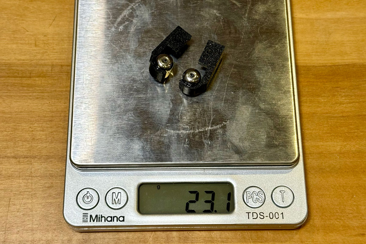 重さは若干増えて、ペアで23.1gになりました。